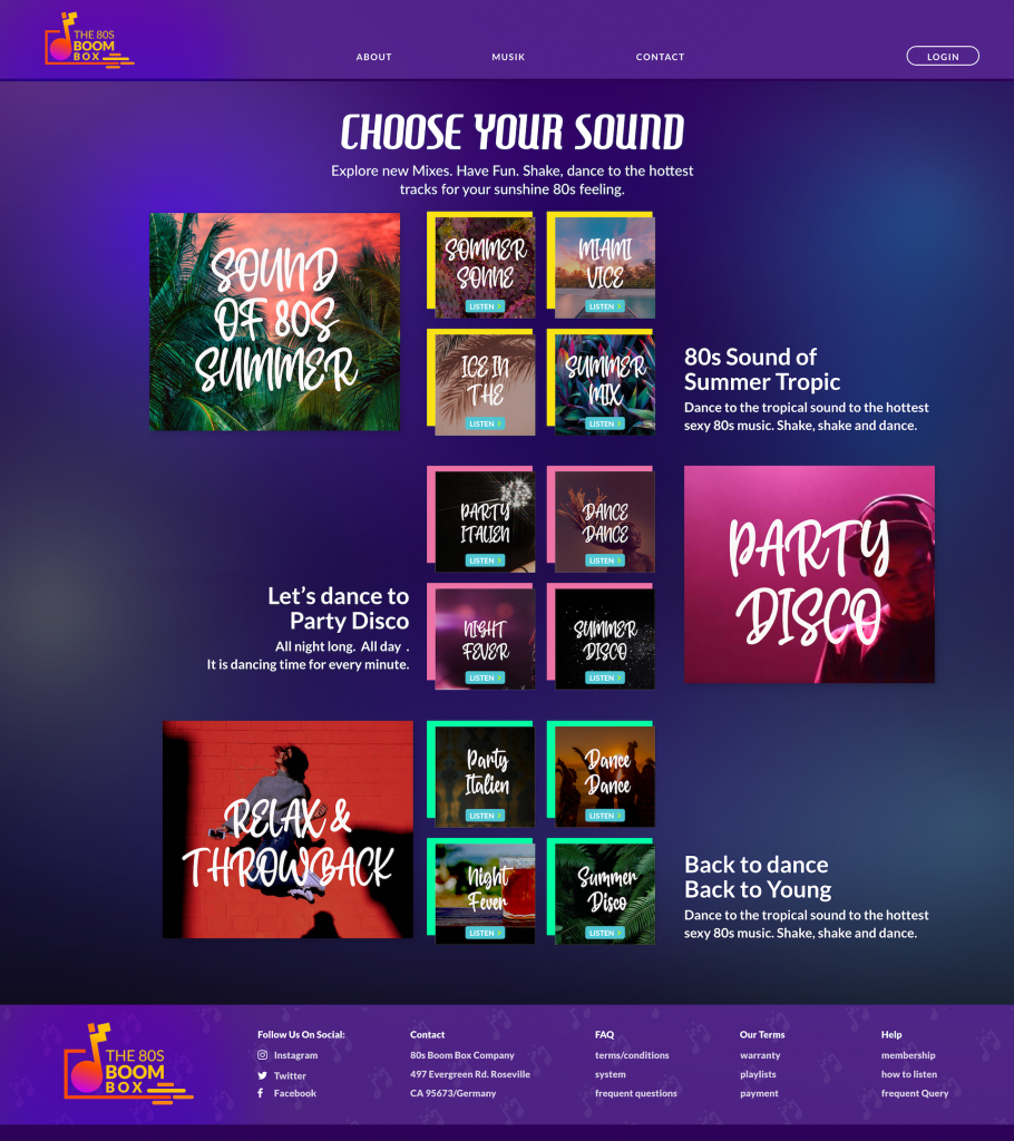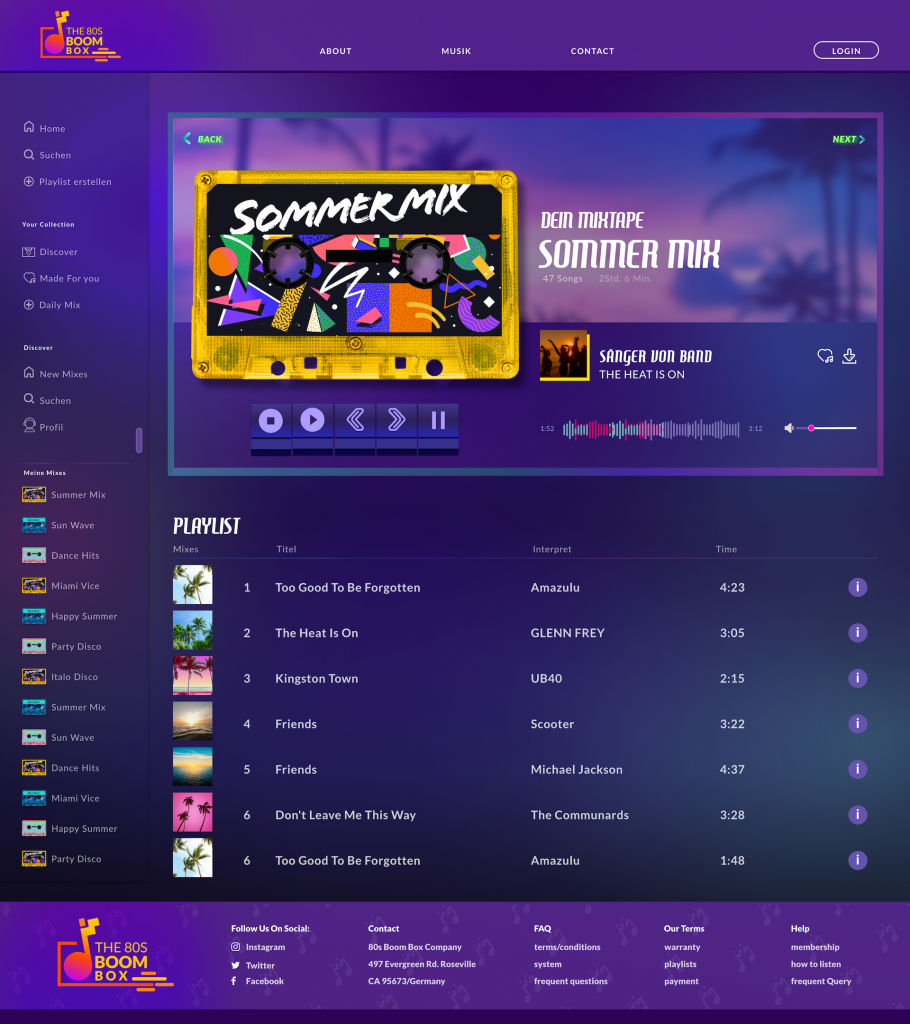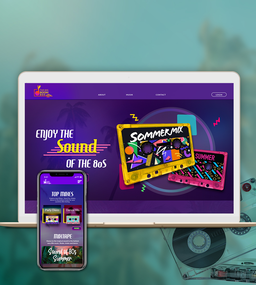 Mit der Musik App Boom Box hat man die Möglichkeit Playlisten aus den 80s Jahren zu hören. Der Fun besteht darin, dass bei dem Abspielen der Musikstücke eine Kassette läuft. So erhält der User das Gefühl von retro. Designt wurde eine App und eine Webseite.