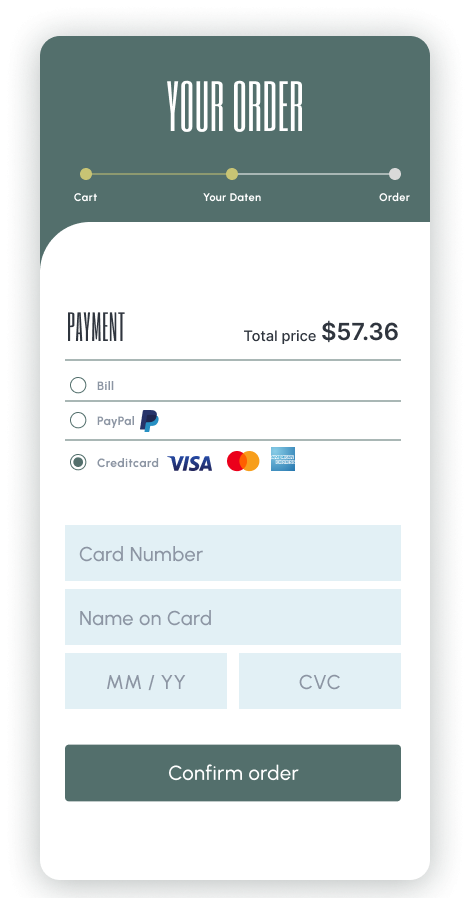 Formular für eine Kreditkartenzahlung.